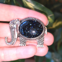 Elephant broche verre fondu aventurine bleu