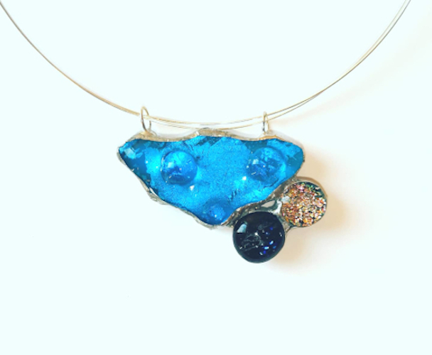 Je crée des décorations uniques en verre ainsi que des bijoux. Pour fabriquer mes décorations, j'utilise du verre spécial de qualité COE 90 et 96. Il provient des manufactures américaines Spectrum et Bullseye. J'utilise aussi le fameux verre de Murano pour concevoir mes bijoux.